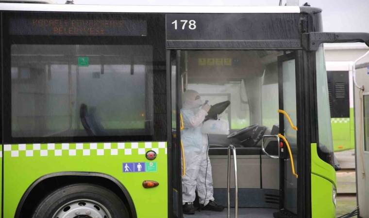 Her araç, günlük ve periyodik detaylı temizlik olmak üzere, iç ve dış temizlikleri saha hizmetleri amirliği bünyesinde bulunan, 2 vardiya halinde, 4’lü gruplar olarak çalışan temizlik personeli tarafından yapılıyor. Ulaşım Dairesi Başkanlığı Otobüs İşletmesi Şube Müdürlüğü garajında bulunan mevcut toplu taşıma araçlarının iç kısımlarına, iki ayda bir olmak üzere yılda 6 defa nano gümüş dezenfeksiyon uygulaması gerçekleştiriliyor.