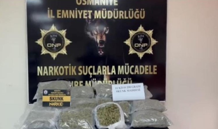 Osmaniye Emniyet Müdürlüğü ve Malatya İl Emniyet Müdürlüğü ekiplerinin ortak çalışması neticesinde, yolcu otobüsü ile seyahat eden bir şüphelinin uyuşturucu madde taşıdığı bilgisi üzerine harekete geçildi. Osmaniye Şehirlerarası Otobüs Terminali’nden çıkışında durdurulan yolcu otobüsünde hassas burunlu narkotik köpeği ile yapılan aramada Muhammed Ali E.’nin ait valizin içinde 11 kilo 250 skunk ele geçirildi.