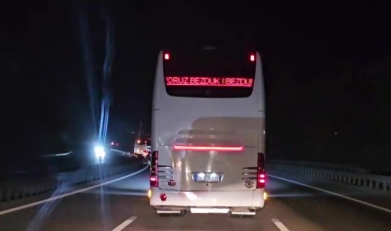 Ramazan Bayramı tatilinde TEM Otoyolu’nda çekilen görüntüler sürücüleri ikiye böldü. Otobüsün arkasında LED’li kayan yazı ekleyerek bekarlığını dile getiren şoförün diğer sürücülerin dikkatini dağıtarak trafiği tehlikeye soktuğunu söyleyen de oldu, meslektaşını destekleyen de.