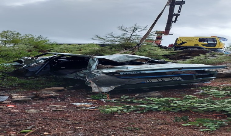 Akseki-Manavgat Karayolu Taşkesiği Mahallesi yakınlarında 20 metre aşağıya uçarak hurdaya dönen otomobilde 1 kişi ölürken , 3 kişi de yaralandı.