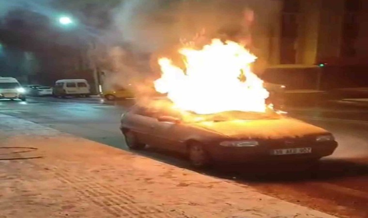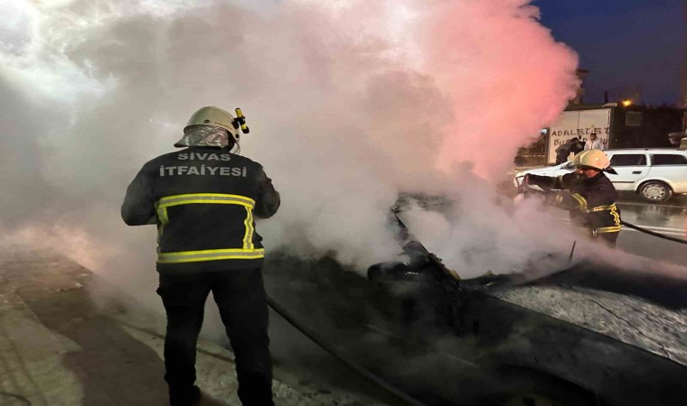 Sivas’ta gece saatlerinde bir araç alev alev yandı. O anlar kameraya yansıdı.