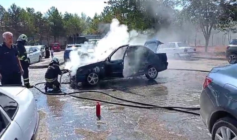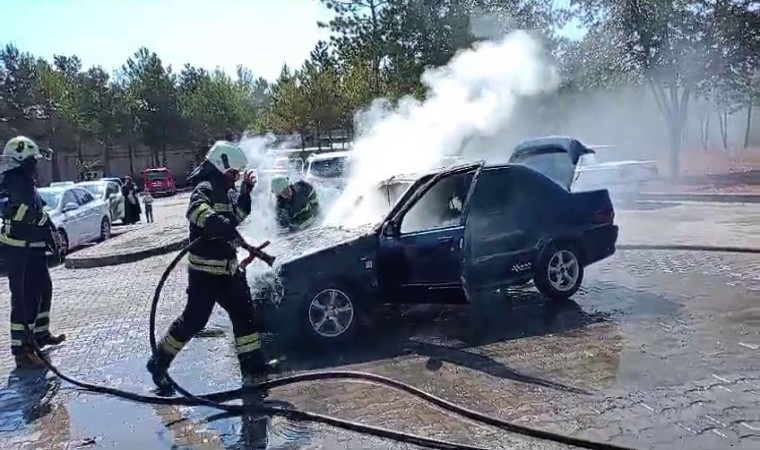 Edinilen bilgilere göre yangın, Sivas Cumhuriyet Üniversitesi Hastanesi otoparkında meydana geldi. Park halindeki otomobilin motor kısmında bilinmeyen bir nedenle yangın çıktı. Yangın kısa sürede büyürken, durumun bildirilmesi üzerine olay yerine itfaiye ekipleri sevk edildi. İtfaiye ekiplerince söndürülen otomobil kullanılamaz hale geldi. O anlar cep telefonu kamerasına yansıdı.
