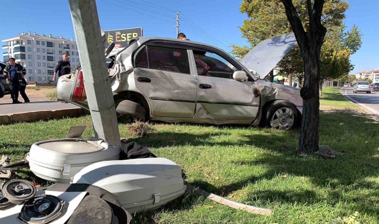 Aksaray’da kontrolden çıkan otomobilin aydınlatma direğine çarptığı kazada sürücü yaralandı.