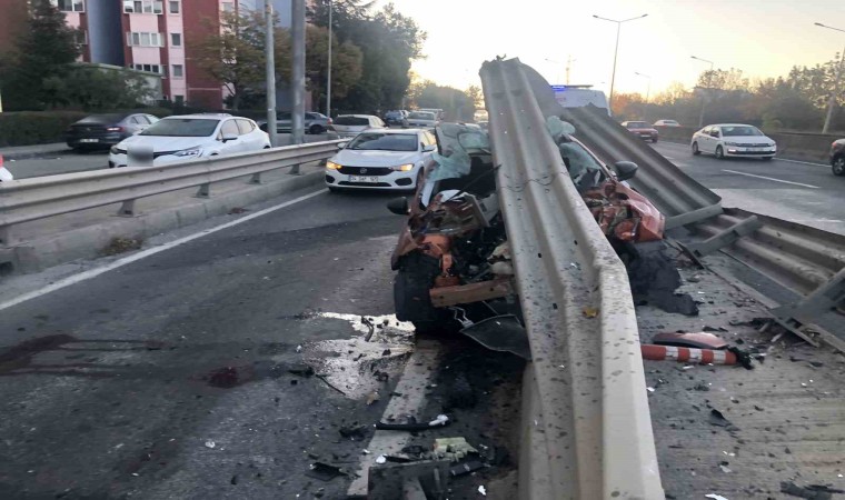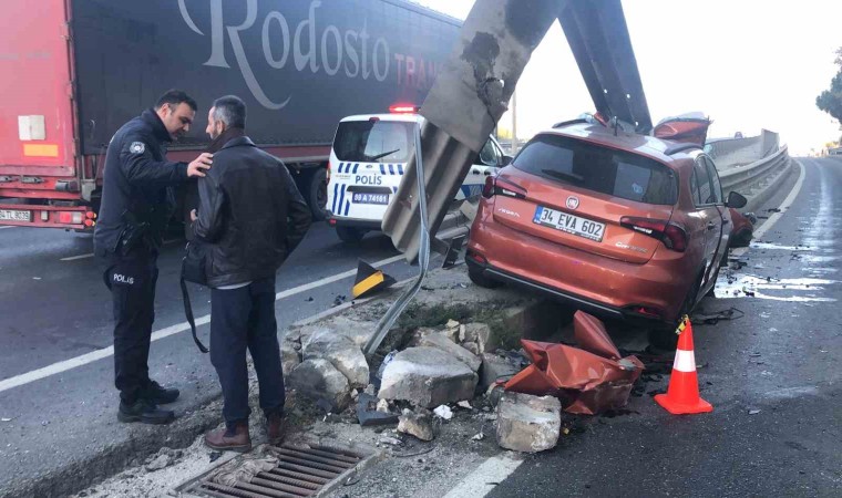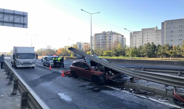 Tekirdağ Çorlu’da bariyerlere çarparak hurdaya dönen aracın sürücüsü kazayı yara almadan atlattı.