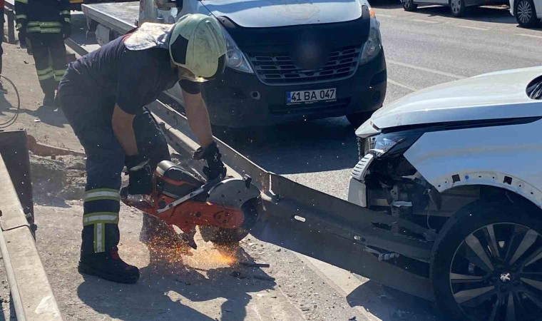 Kocaeli’nin Kartepe ilçesinde sürücünün kontrolünden çıkan otomobil bariyerlere saplandı. Kazada sürücü hafif şekilde yaralandı.