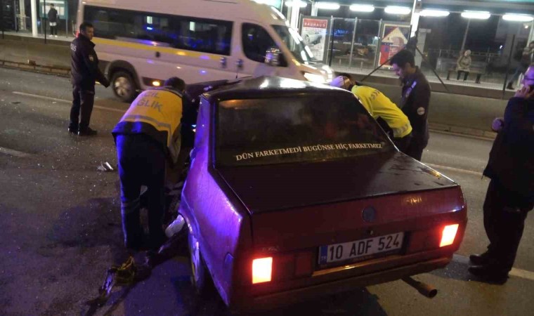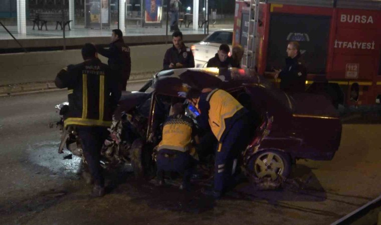 Kaza, saat 06.00 sıralarında merkez Osmangazi ilçesi Sırameşeler Mahallesi mevkiinde meydana geldi. Edinilen bilgiye göre, Mustafa G. (35) idaresindeki 10 ADF 524 plakalı otomobil, sürücüsünün idaresinden çıkarak Bursaray’ın bariyerine çarptı. Çarpmanın etkisiyle savrulan araçta şoför Mustafa G. (35) ve yolcu konumunda bulunan Samet S. sıkıştı. Çevredekilerin ihbarı üzerine olay yerine çok sayıda 112 Acil Sağlık ekibi, itfaiye ve polis sevk edildi. Kaza sonrası yolda metrelerce trafik oluştu. Polis ekipleri yolda güvenlik önlemleri alırken, sağlık ekipleri yaralılara ilk müdahaleyi yaptı. İlk müdahalenin ardından itfaiye ekiplerinin yardımıyla yaralılar, sıkıştıkları araçtan kurtarıldı. Yaralılar, ambulans ile hastaneye kaldırıldı.