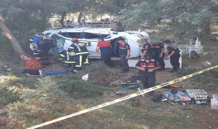 Otomobil, elektrikli bisiklete çarpıp, mezarlığa yuvarlandı: 3 ölü