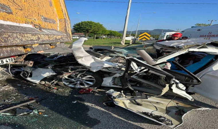 Kaza, Ünye - Fatsa Karayolu Eskikızılcakese mevkisinde meydana geldi. Edinilen bilgiye göre, Hasan A.’nın kullandığı 54 HA 517 plakalı otomobil, sürücüsünün ismi henüz öğrenilemeyen 52 LB 418 plakalı hafriyat kamyonuna dorse kısmından çarptı. Kazanın şiddeti ile kamyona saplanan otomobilin sürücü Hasan A. ve araçta bulunan Gülşen A., Özlem, Elif Huma, Çağrı Efe ve Abdul Muhsin Ç. yaralandı.