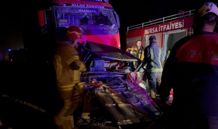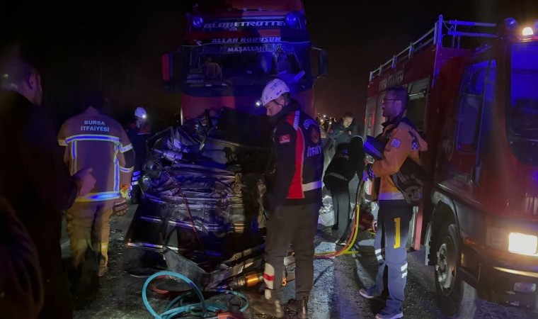 İznik-Adapazarı yolunda otomobilin iki tırın arasında sıkıştığı kazada 1 kişi hayatını kaybetti, 1 kişi yaralandı.