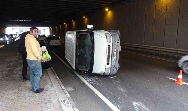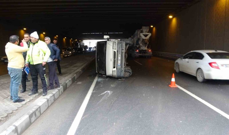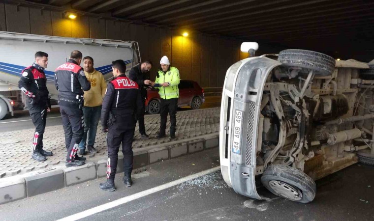Malatya’da alt geçitte otomobil ile çarpışan hafif ticari araç devrilerek yan yattı. Kazada 2 kişi yaralandı.