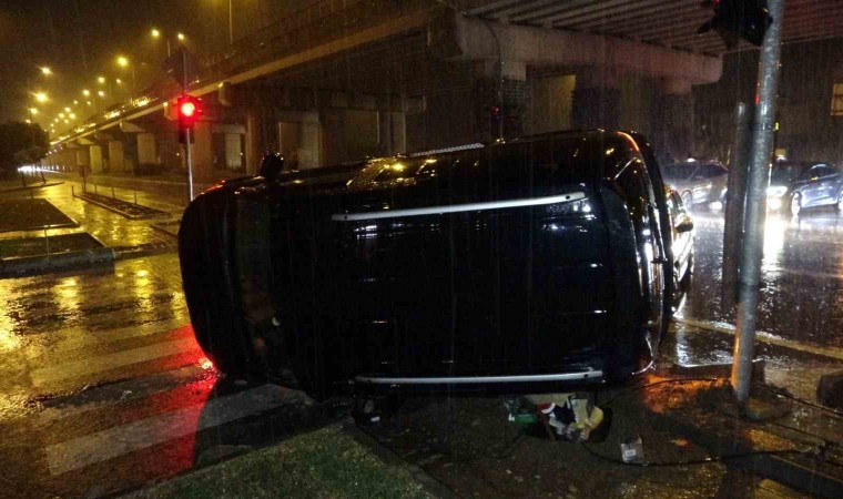 Kaza, Sorgun-Otogar Köprülü Kavşak yan yolda meydana geldi. Antalya istikametine seyir halindeki Ulaş Aslankoç’un kullandığı 07 ZZ 206 plakalı otomobil, Sorgun Bulvarı’na dönen Fuat Kuş’un kullandığı 07 LDU 36 plakalı hafif ticari araç ile çarpıştı. Hafif ticari araç, çarpmanın şiddetiyle yan yatıp trafik lambalarına çarparak durabildi. Kazayı görenler durumu 112 Acil Çağrı Merkezi’ne bildirdi. İhbarla adrese sağlık ve polis ekibi sevk edildi. Yaralanan otomobilin yolcusu Kamer Aslankoç, sağlık ekibinin olay yerindeki müdahalesinin ardından ambulansla hastaneye kaldırıldı. Kazanın ardından kendisini iyi hissettiğini belirten, bir süre sonra rahatsızlanan hafif ticari araç sürücüsü Fuat Kuş kendi imkanlarıyla hastaneye gitti. Yaralıların sağlık durumlarının iyi olduğu bildirildi. Sağanak yağışa rağmen trafik ekipleri trafiği rahatlatmak için kazaya karışan otomobile iterek güvenli noktaya çekti.
