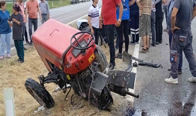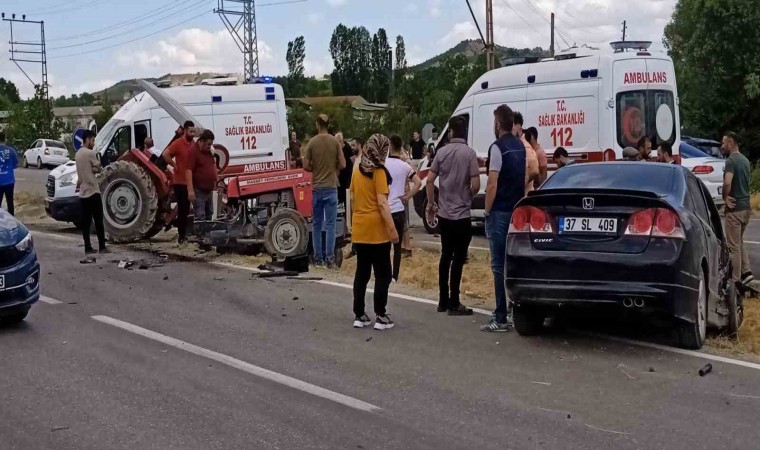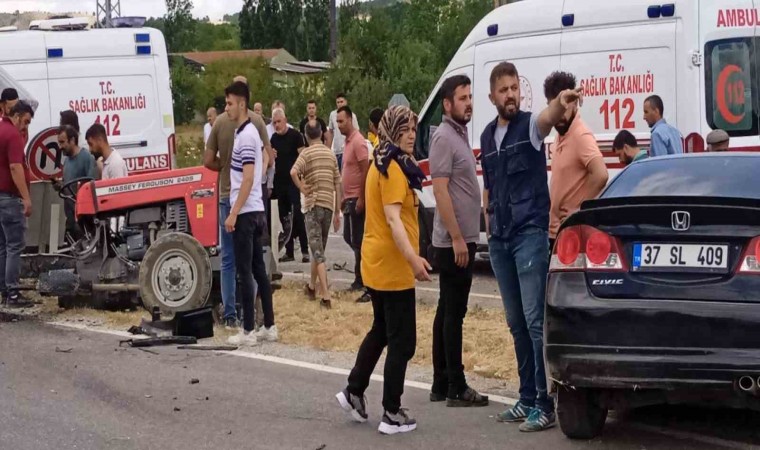 Kastamonu’da otomobil ile çarpışan traktör ikiye bölündü. Kazada 2 kişi yaralandı.