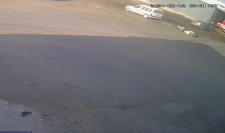 Kaza anı ise bir işyerinin güvenlik kamerasına saniye saniyesine yansıdı. Görüntüde kazanın ardından motosiklette yolcu olarak bulunan bir kişinin motosiklete çarpan hafif ticari araca öfkeyle koştuğu, sürücünün kadın olduğunu görünce bir şey yapmadan geri döndüğü görüldü.