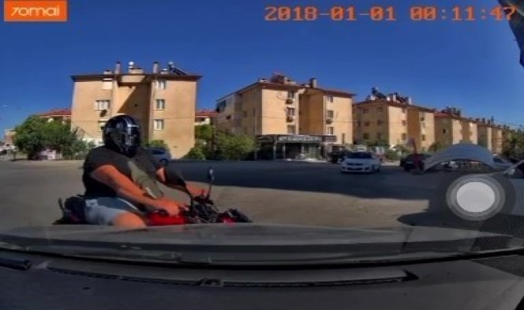 Edinilen bilgiye göre, Edremit’in Kadıköy Mahallesi’nde ışıklı kavşakta manevra yapan T.E. yönetimindeki 06 BHN 354 plakalı otomobil ile E.C.A. yönetimindeki 10 AOG 622 plakalı motosiklet çarpıştı. Kazada motosiklet sürücüsü yaralandı. Kazanın ihbar edilmesi üzerine bölgeye 112 Sağlık ekipleri sevk edildi. Yaralı sürücü E.C.A, ambulans ile hastaneye sevk edildi. Kaza ana ise otomobil kamerasına anbean yansıdı.