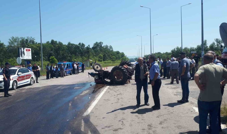 Kaza, saat 11.00 sıralarında Perşembe beldesi yolunda meydana geldi. Çaycuma istikametine seyir halinde olan Y.K. idaresindeki 67 AAU 100 plakalı otomobil ile kavşaktan dönen Sadık Akkaya’nın kullandığı 67 ZH 517 plakalı traktör çarpıştı. Çarpışmanın şiddetliyle otomobil takla atarak refüje savrulurken traktör ise ters döndü. Kazada sürücü Akkaya ters dönen traktörün altında kalırken, otomobilde bulunan Y.K. ile H.K. yaralandı.