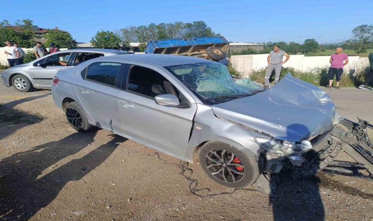 Sakarya’nın Kaynarca ilçesinde traktör ile otomobilin çarpışması neticesinde bir kişi yaralandı.