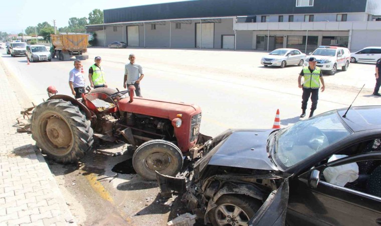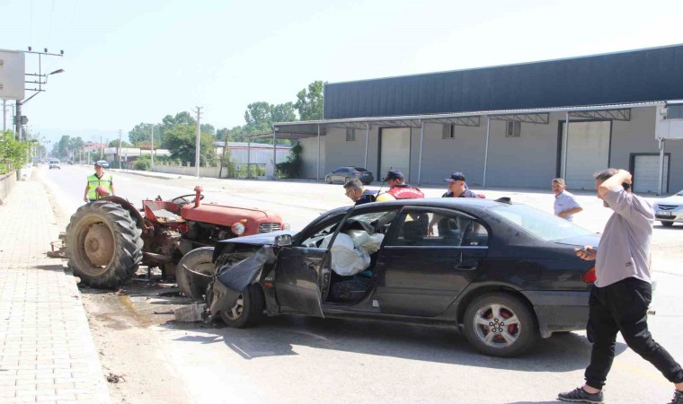 Kazada otomobil içinde bulunan vatandaş “Aydınpınar istikametinden gelirken traktör bir anda önümüze çıktı. Kurtarmak için kaçtık ama olmadı” dedi.