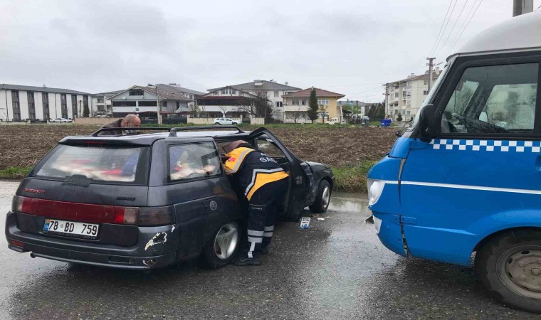 Ömercikler Mahallesi 8099. Sokak üzerinde meydana gelen kazada, S.D. idaresindeki 78 BD 759 plakalı Lada marka otomobil ile K.Y. idaresindeki Karsan marka yolcu minibüsü çarpıştı. Meydana gelen kazada otomobil sürücüsü S.D. ile yolcu olarak bulunan B.Ç. ve S.D. yaralandı. Durumun haber verilmesi üzerine bölgeye sağlık, polis ve itfaiye ekipleri sevk edildi. Olay yerinde yapılan ilk müdahale sonrasında yaralılar hastaneye sevk edildi. Kazaya ilişkin inceleme başlatıldı.