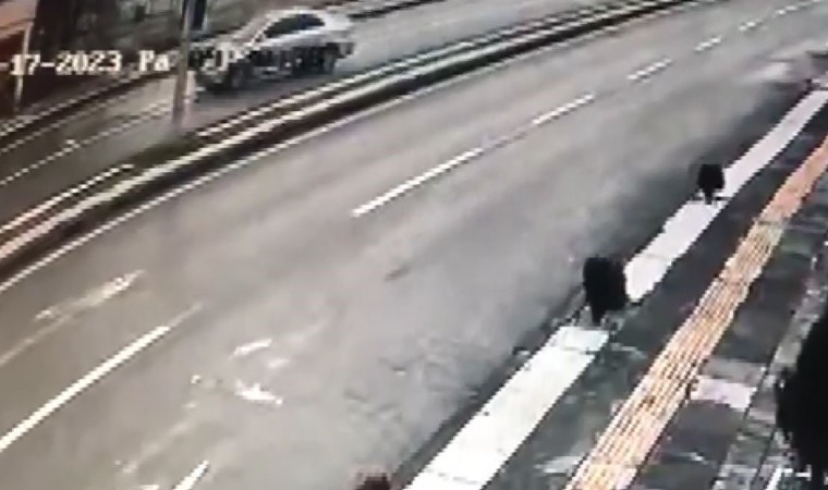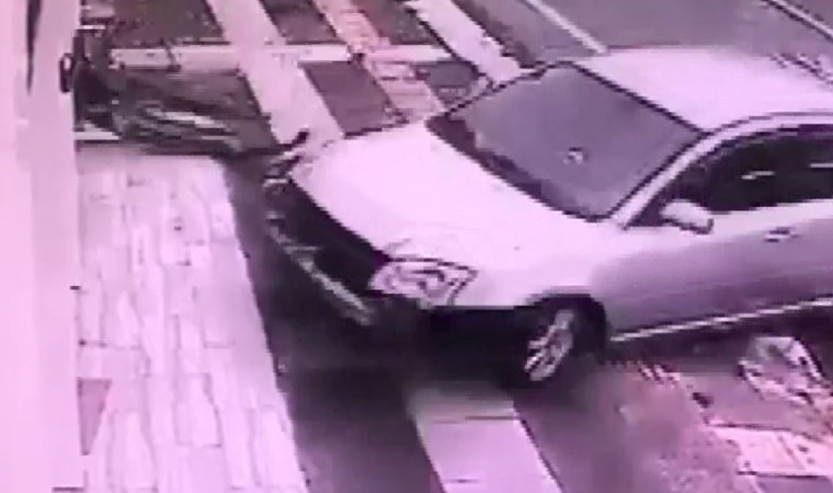 Otomobilin kontrolden çıkarak işyerine çarpma anı çevrede bulunan güvenlik kameralarına yansıdı.