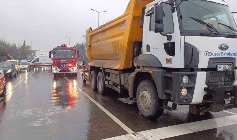 Kaza, D-655 karayolu Yığılca Işıklı kavşakta meydana geldi. Edinilen bilgilere göre, A. T. 34 GUG 612 plakalı kamyon kırmızı ışıkta durduğu esnada yağışlı hava nedeniyle kayganlaşan yolda durmayan H. E. idaresindeki 81 GA 081 plakalı otomobil arkadan çarptı. Çarpışmanın etkisiyle otomobilin motor kısmı hurdaya dönerken otomobil sürücüsü H. E. ise yaralandı. 112 Acil Çağrı merkezine yapılan ihbar üzerine bölgeye sağlık ve polis ekipleri sevk edildi. Sağlık ekipleri yaralıya yaptıkları ilk müdahalenin ardından Düzce Üniversitesi tıp Fakültesi Hastanesi’ne kaldırılarak tedavi altına alındı. Kazaya karışan araçlar polis ekiplerinin de yardığımı ile kaldırılarak yol trafiğe açıldı. Kazayla ilgili inceleme başlatıldı.