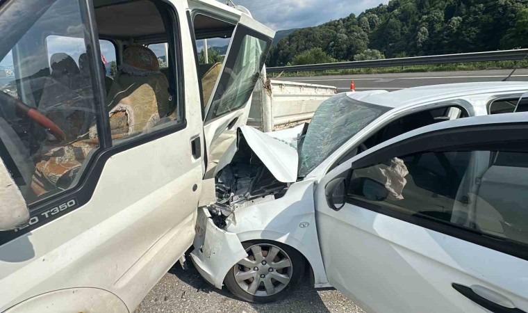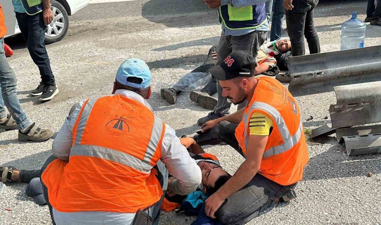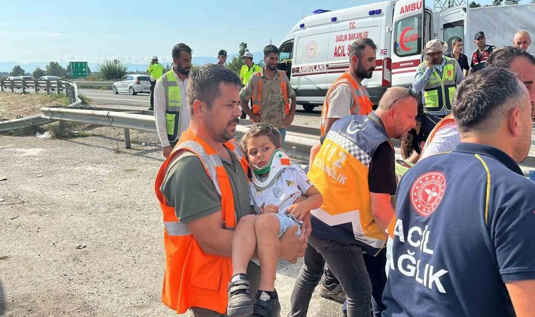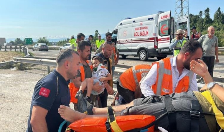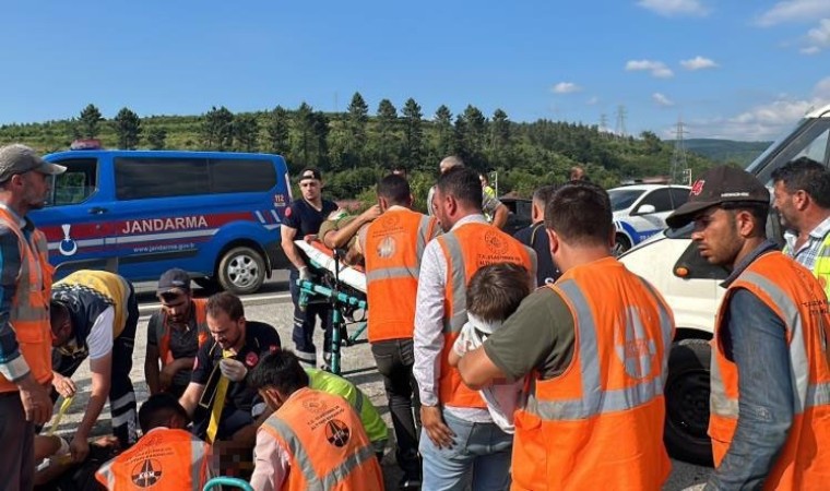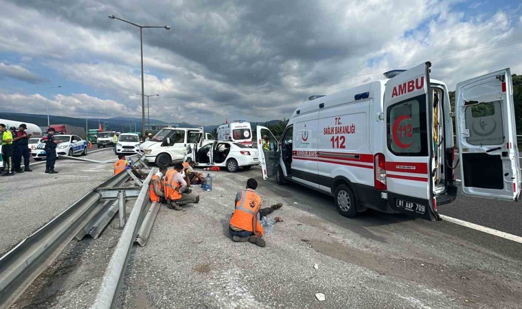 TEM Otoyolu Düzce geçişinde bir otomobilin, Karayolları işçilerini taşıyan kamyonete çarpması neticesinde meydana gelen kazada 15 kişi yaralandı.