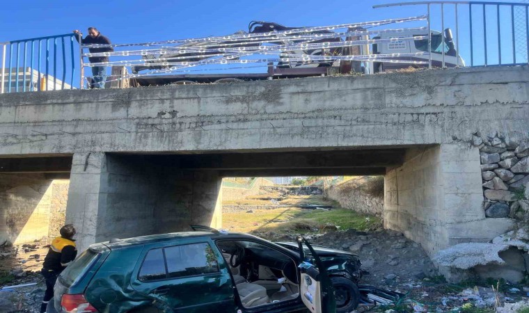 Osmaniye’de yaklaşık 3 metre yükseklikteki köprüden dereye uçan otomobildeki 2 kişi yaralandı.