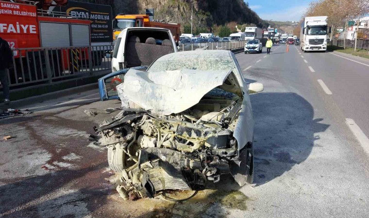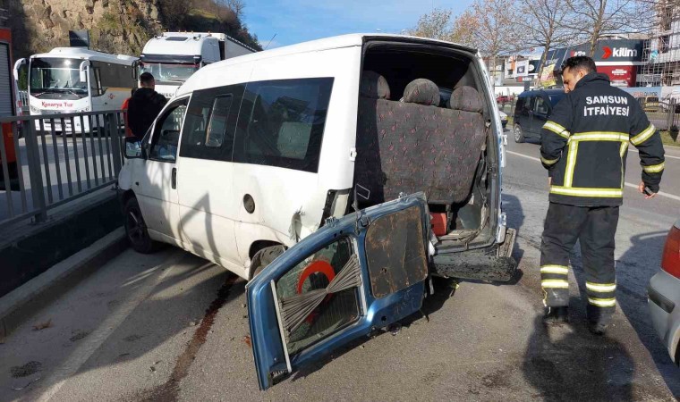 Samsun’da otomobilin lastiği patlayan hafif ticari araca arkadan çarparak hurdaya döndüğü kazada sürücü yaralandı.