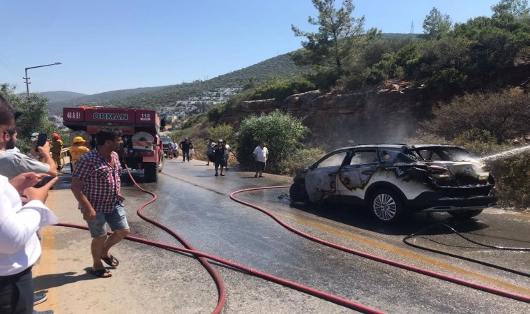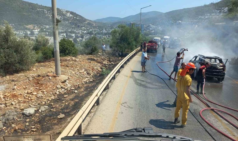 Muğla’nın Bodrum ilçesinde seyir halindeki otomobilde çıkan yangın, otluk ve makilik alana sıçradı. Yangın, ekiplerin müdahalesiyle söndürüldü.