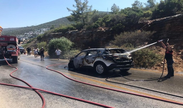Edinilen bilgiye göre, Göltürkbükü’nden Torba istikametine seyreden otomobil, Torba içerisindeki trafik ışıklarına yaklaştığı sırada yanmaya başladı. Kısa sürede alev topuna dönen otomobildeki alevler otluk ve makilik alana sıçradı. Aracından inen sürücü ve çevredeki vatandaşlar, yangını söndürmeye çalıştı ama başarılı olamadı. İhbarın ardından itfaiye ve orman ekipleri bölgeye geldi. Ekiplerin müdahalesiyle yangın söndürüldü. Yangında otomobil metal yığınına döndü. Söndürme çalışmaları esnasında yolun iki yönünde de uzun araç kuyrukları oluştu. Otomobilin kiralık olduğunu dile getiren sürücü, yolda seyrettiği sırada aracın bir anda yanmaya başladığını söyledi.