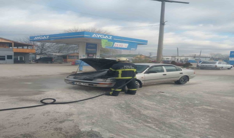 Bolu’da seyir halinde giden bir otomobil, motor kısmından alev aldı. Otomobilin motor kısmı yangın nedeniyle küle döndü.