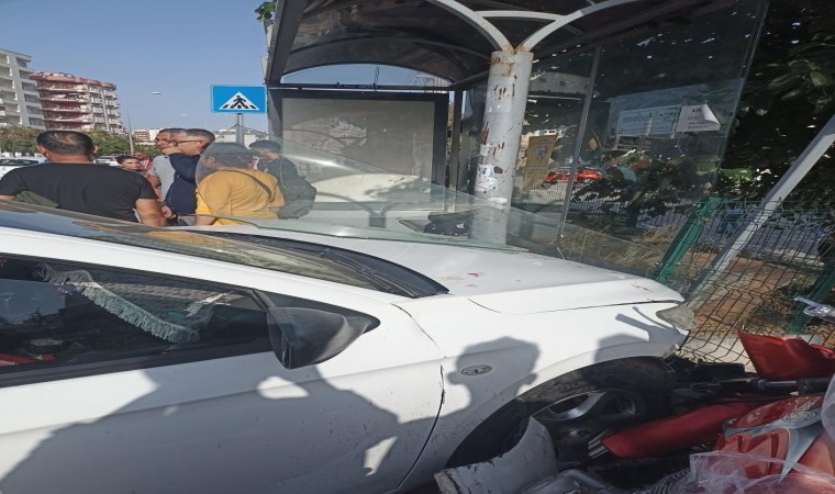 Mersin’in merkez Mezitli ilçesinde bir otomobil, öğrencilerin bulunduğu otobüs durağına daldı. Can kaybının yaşanmadığı kaza anı güvenlik kameralarına yansıdı.