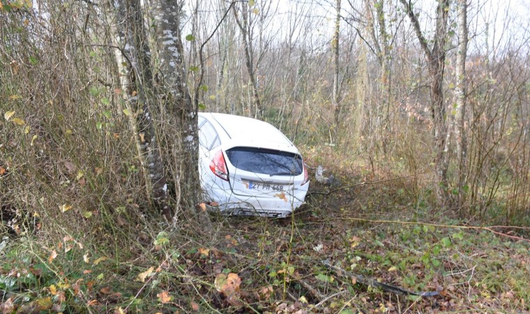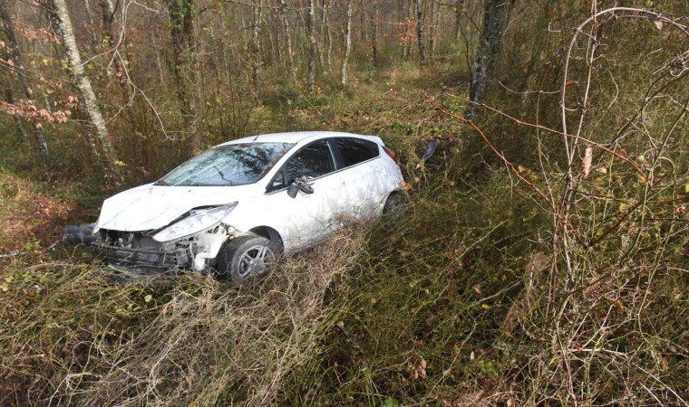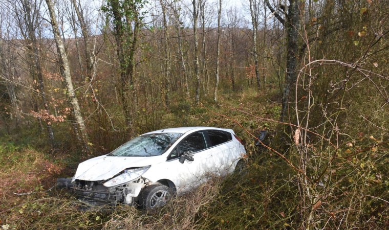 Sinop’ta otomobilin virajı alamayarak ormana uçtuğu kazada sürücü yaralandı.