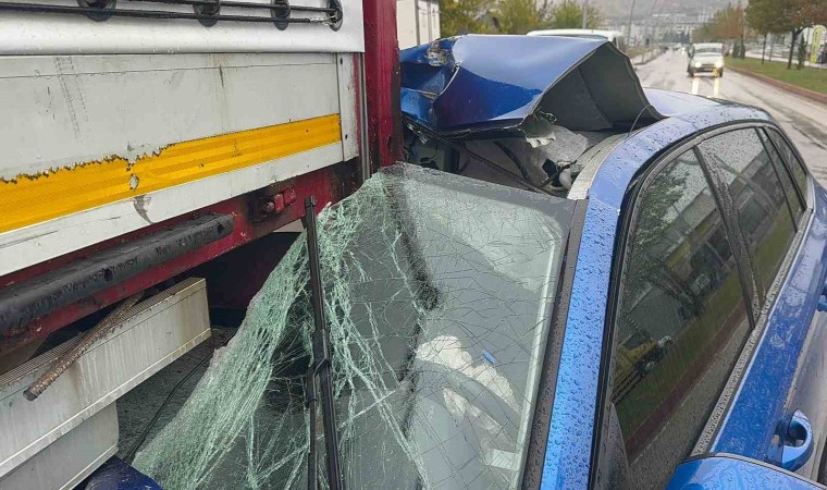 Elazığ’da otomobil, park halindeki tırın altına girdi. Kazada araç kullanılamaz hale gelirken bir kişi de yaralandı.