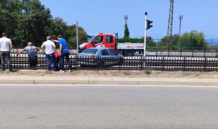 Kaza, Samsun’un Atakum ilçesi Körfez Mahallesi Ondokuz Mayıs Üniversitesi Diş Hekimliği Fakültesi Hastanesi önünde meydana geldi. Edinilen bilgiye göre, 34 BU 5967 plakalı otomobil, sürücünün direksiyon hakimiyetini kaybetmesi sonucu yoldan çıkarak korkulukları parçalayıp raylı sistem hattına girdi. Yürekleri ağza getiren kaza maddi hasarla atlatıldı.