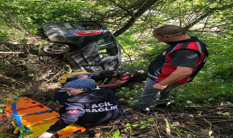 Artvin’in Şavşat ilçesinde sürücüsünün direksiyon hakimiyetini kaybettiği otomobil şarampole devrildi.
