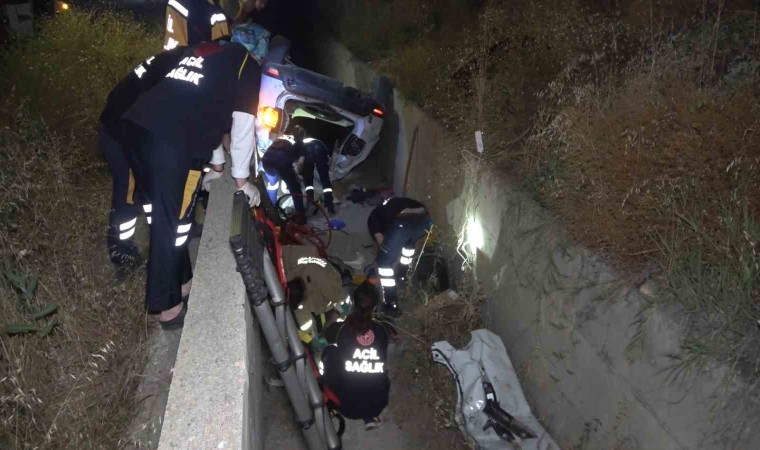 KIRIKKALE'DE KONTROLDEN ÇIKAN OTOMOBİLİN SU KANALINA DEVRİLDİĞİ KAZADA İKİ ŞANTİYE İŞÇİSİ AĞIR YARALANDI.