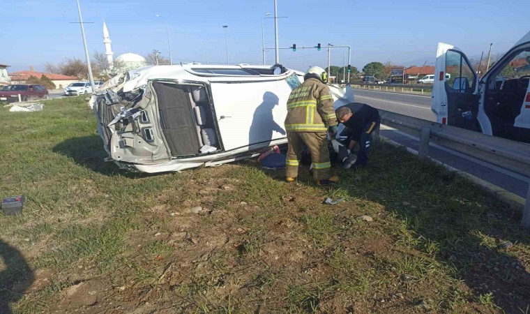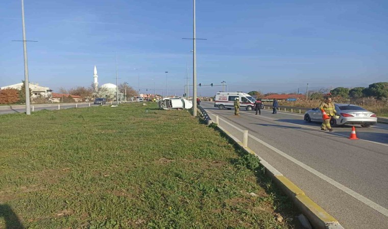 Balıkesir’in Burhaniye ilçesinde sürücüsünün direksiyon hakimiyetini kaybettiği otomobil takla attı. Kazada yaralanan 2 kişiyi, itfaiye ekipleri kurtardı.