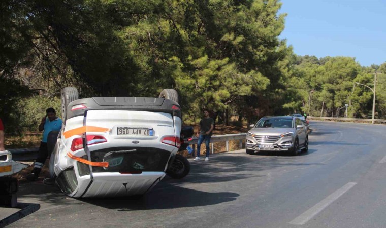 Antalya’da üniversite öğrencisinin kullandığı otomobil takla attı. Kazayı yara almadan atlatan ve kazanın şokuyla ağlayan genci ise babası sakinleştirdi.