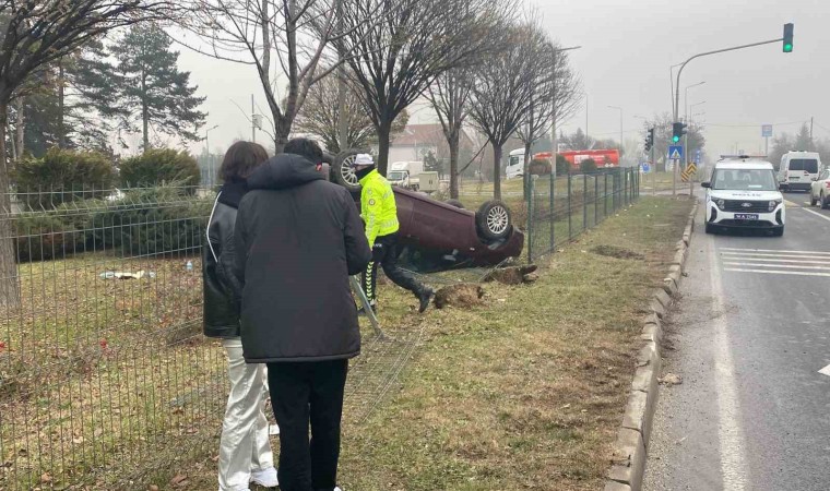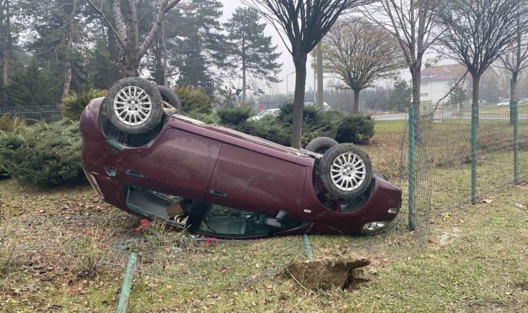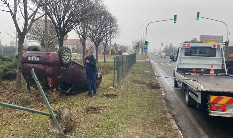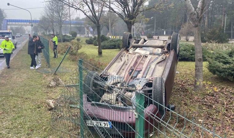 Bolu’da kontrolden çıkan otomobil takla attı. Tepetaklak olan otomobildeki 2 kişi şans eseri yara almadan kazayı atlattı.