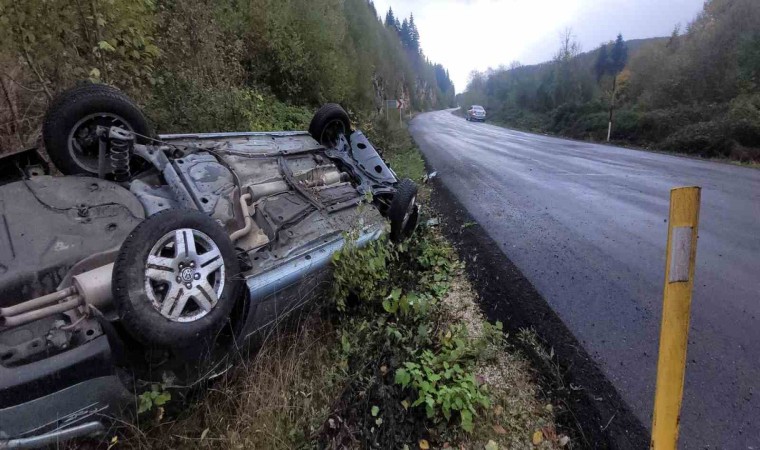Kastamonu’nun Cide ilçesinde yağışlı yolda kontrolden çıkarak takla atan otomobilin sürücüsü yaralandı.