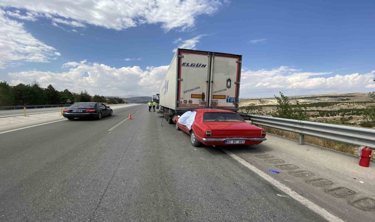 Konya’da otomobilin tıra arkadan çarpması sonucu meydana gelen trafik kazasında otomobil sürücüsü hayatını kaybederken, sürücünün eşi ise yaralandı.