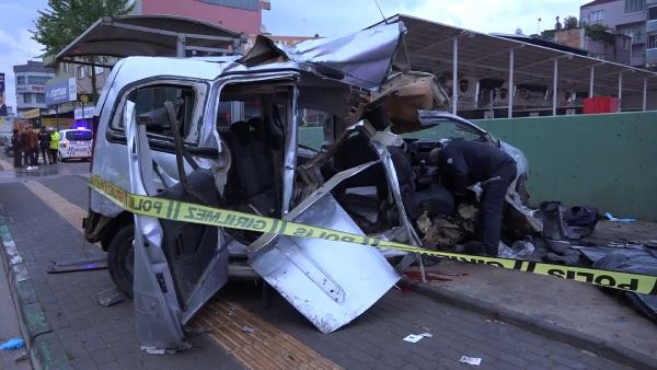 Otomobil ve durağa çarpan araç ikiye bölündü: 2 ölü, 1 yaralı