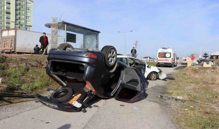 Öte yandan, 2 kişinin yaralandığı kaza güvenlik kamerasına yansıdı. Yolcu durağını ıska geçen otomobillerin yoldan çıkması ve kaza anında yaşanan panik saniye saniye kaydedildi.