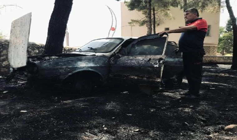 Emrullah KARAKAŞ/DERİK(Mardin),(DHA)-MARDİN'in Derik ilçesinde park halindeki otomobilde çıkan yangın, otoparktaki ağaçlara da sıçradı. Yangın itfaiye ekiplerince söndürülürken, araç ile ağaçlar zarar gördü.