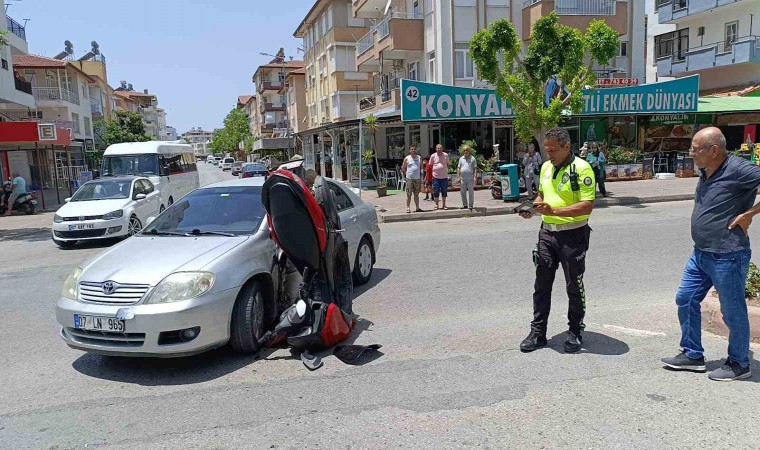 Manavgat’ta ’U’ dönüşü yapan araca çarpan motosiklette bulunan 2 kişi yaralandı. Çarpışmanın etkisiyle motosikletin adeta amuda kalkıp üzerindeki 2 kişiyi ileri doğru fırlattığı anlar güvenlik kamerası tarafından saniye saniye görüntülendi.