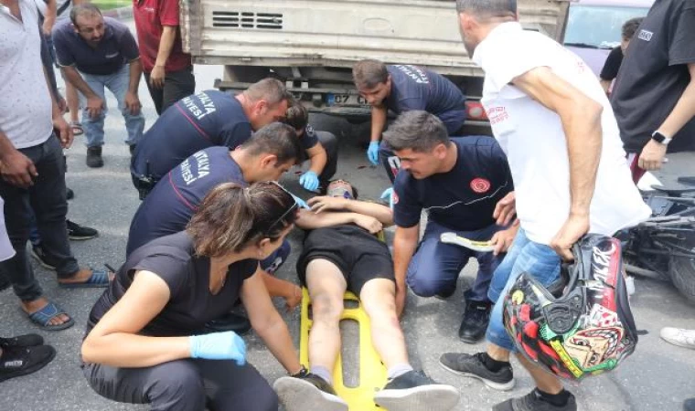 Adem AKALAN/ANTALYA, (DHA)- ANTALYA'da seyir halindeki otomobile motosikleti ile çarpıp, park halindeki kamyonetin altına giren Cesur Akdoğan (17), yaralandı.