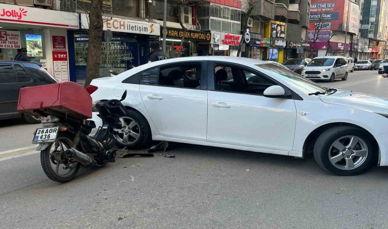 Eskişehir’de otomobile çarpan motosiklet ortadan 2’ye bölünürken, kazada 1 kişi yaralandı.