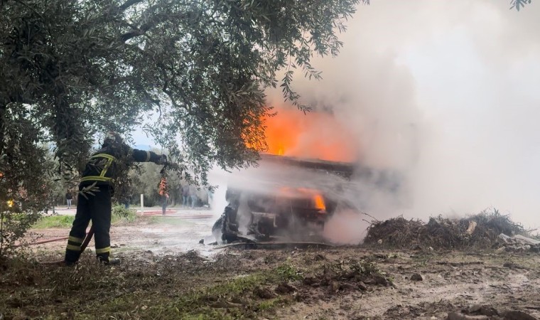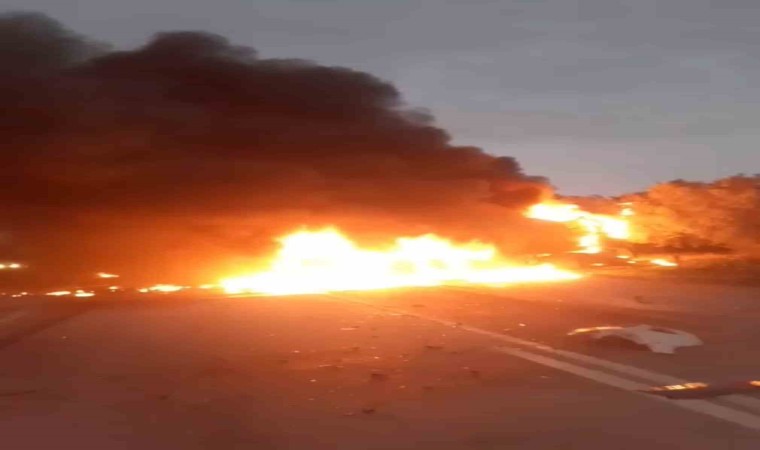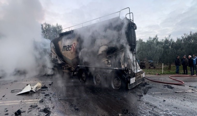 Bursa’nın İznik ilçesinde tanker ile karşı şeritten gelen otomobil kafa kafaya çarpıştı. Çapmanın etkisiyle alev alan tank patladı. Savaş alanını andıran kaza görüntüleri kameralara yansıdı. Kazada tanker ile çarpışan otomobil sürücüsü Eşrefzade Mahalle muhtarı hayatını kaybederken yanındaki kişi ağır yaralandı.