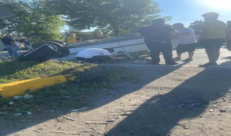 Zonguldak’ın Çaycuma ilçesinde bir araca çarpmamak için, sürücüsünün direksiyonu kırdığı otomobil taklalar atarak durabildi. Kazada 1 kişi yaralandı.