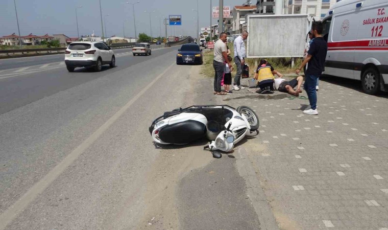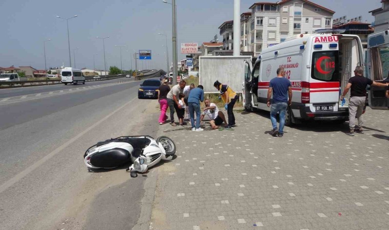Manavgat çevre yolunda motosikletin aynı istikamette seyir halindeki otomobilin arka tamponuna çarparak sürüklenmesi sonucu meydana gelen kazada motosiklet sürücüsü hafif yaralandı.